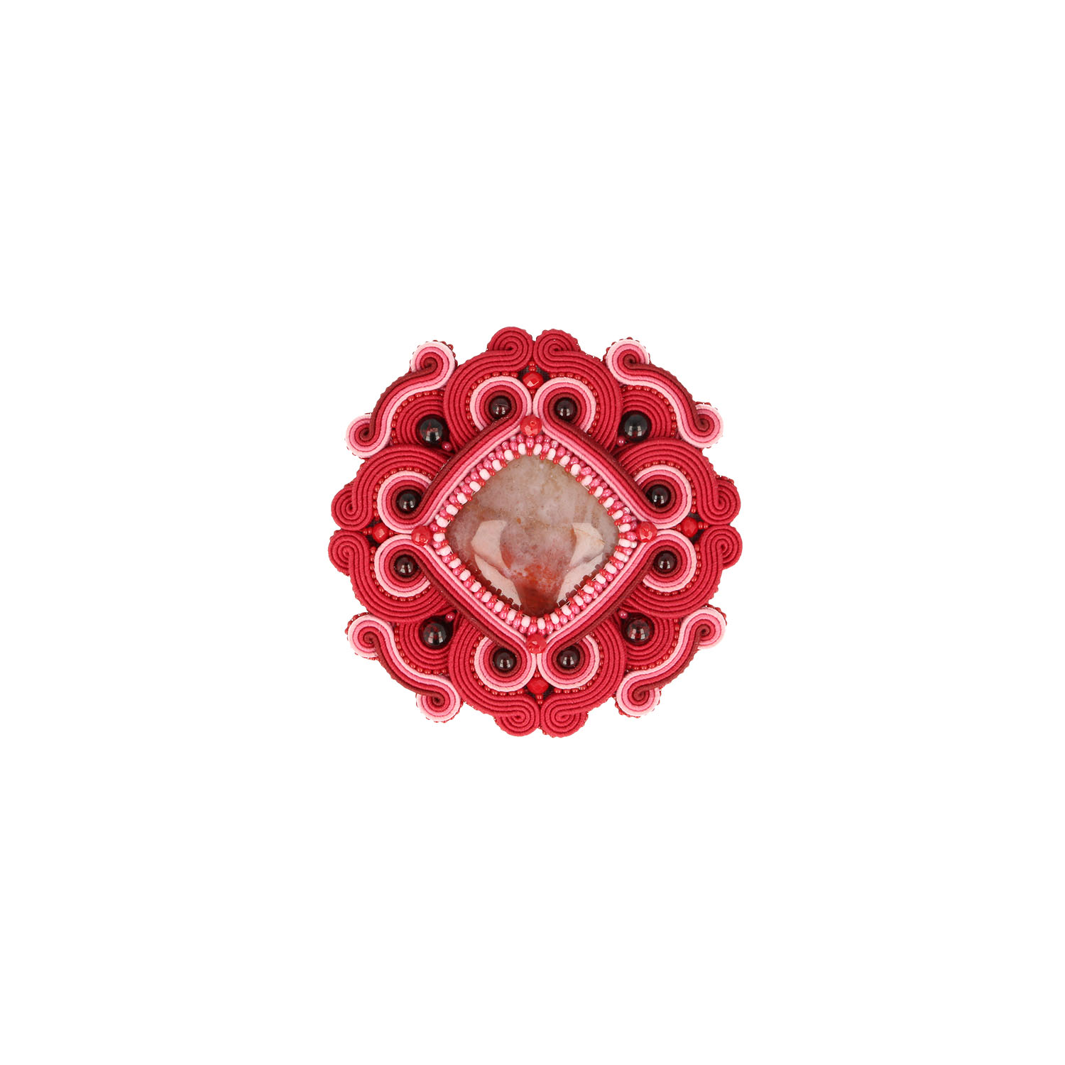 Bordeauxfarbenes Soutache Element mit Achatstein